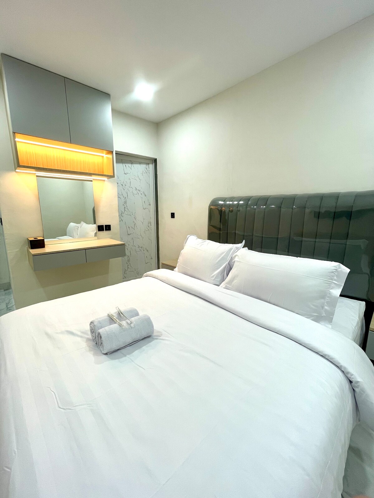We are Senyaman Homes. Experience the comfort of staying in a modern room with a minimalist and elegant touch. Luxurious marble floors, warm lighting, and neat furnishings create a serene atmosphere perfect for rest. 📍 Strategic Location: • Near culinary centers, cafes, and popular restaurants such as "Ucok Durian, Richeese Factory, Wongsolo, Bunda Thamrin" • Minutes from malls • Business area • Safe and comfortable environment 💡 Suitable for: • Solo travelers • Couples • Business guests .
