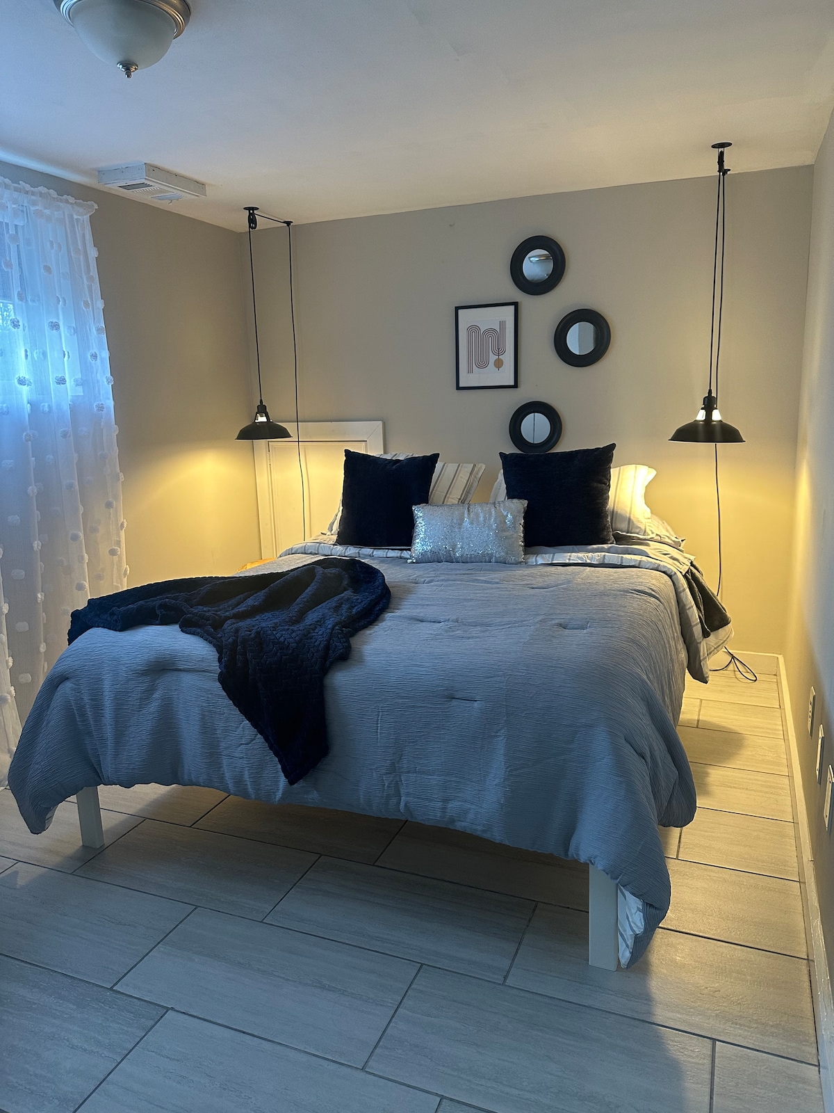 Bu özel, temiz ve konforlu ortamda konaklamanızın tadını çıkarın. Mekan, evde çalışmak için büyük boy yataklı ve masalı bir yatak odası sunar. Oturma odasında akıllı TV ve bölümlü koltuk bulunmaktadır. İçinizdeki şefi ortaya çıkarın! Mutfak gereçlerine, yemek takımlarına ve tencere/tavaya erişim. Mülk içinde ücretsiz otopark. Yakınında birçok ihtiyaç malzemesi bulunan uygun konum (alışveriş merkezi/benzin istasyonu/restoranlar). I-495'e 2 dakika, Macarthur havaalanına 15 dakika uzaklıktayız. Port Jefferson, Patchogue vb. aile ziyaretleri için harika!