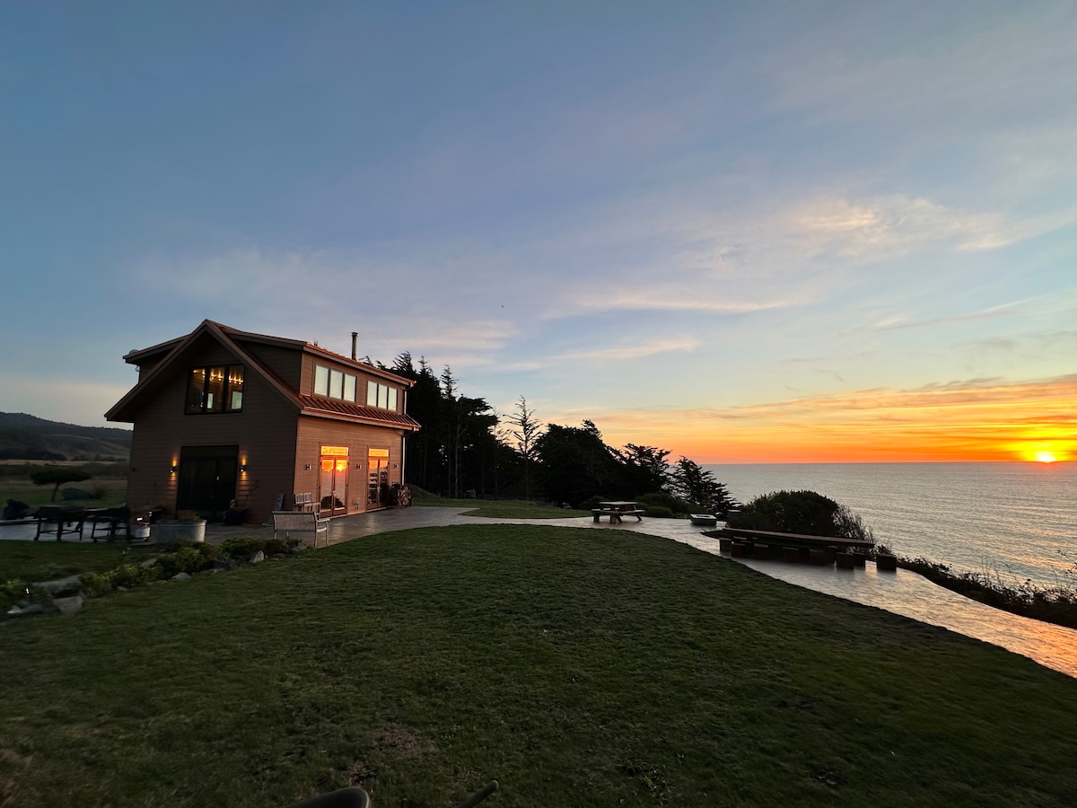 Gualala, Kaliforniya'da okyanus kıyısında evin tamamı