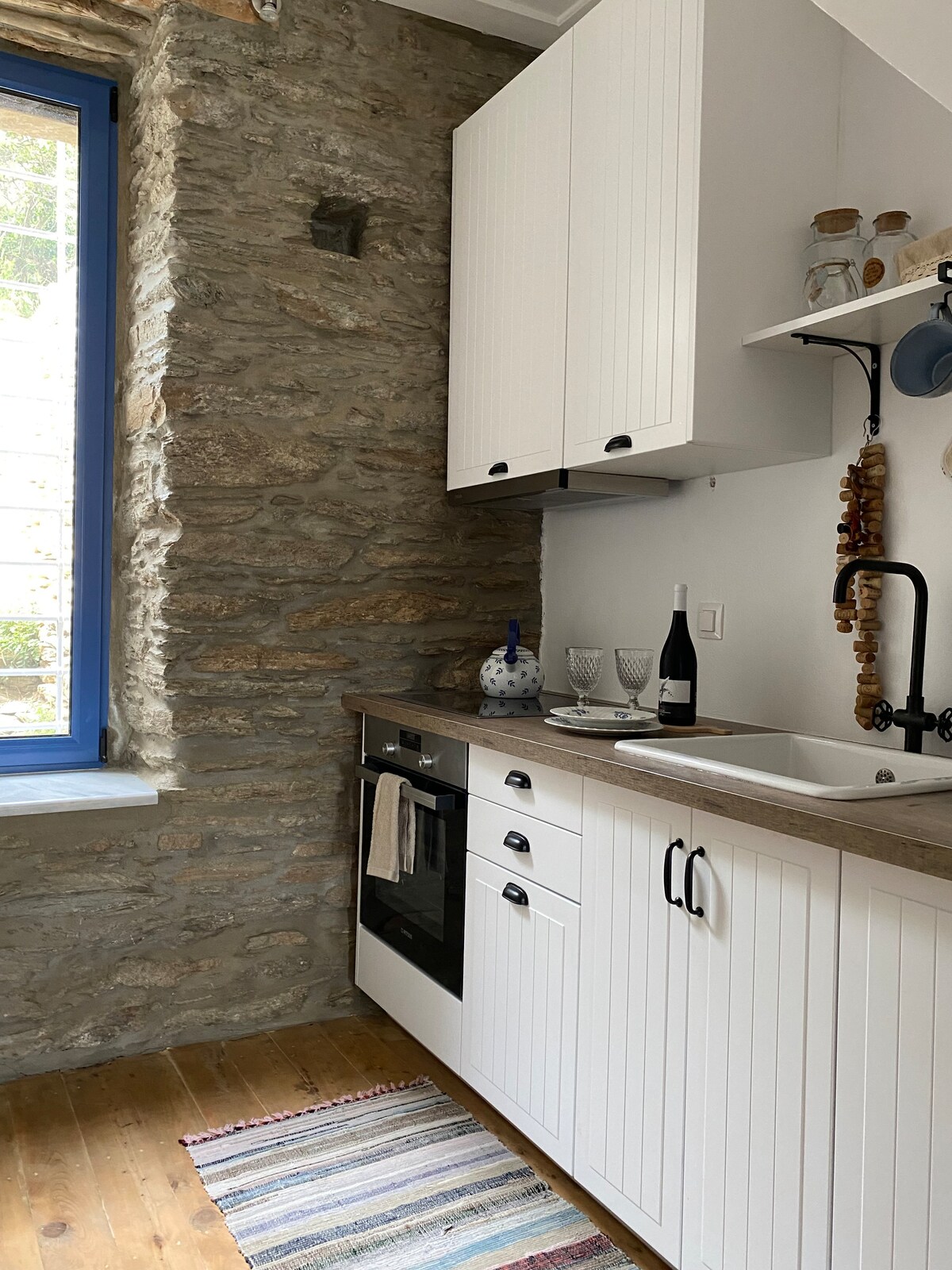 Zamanda bir adım geriye gidin ve yürüyüşçüler ve doğa severler için ideal, orman ve teraslarla çevrili, dik bir dağ yamacına kurulmuş bu eşsiz, güzel eski taş evde kalın. İki gemi enkazı olan muhteşem bir kumlu plaj arabayla yirmi beş dakika uzaklıktadır. Kışın Taş Ev, odun yakan bir ateşe sahiptir, bu da onu her mevsimde, özellikle yürüyüş tatillerinde, her mevsimde kendi özel cazibesine sahip bir konaklama yeri haline getirir. Dört işaretli yürüyüş Arni'den başlar.