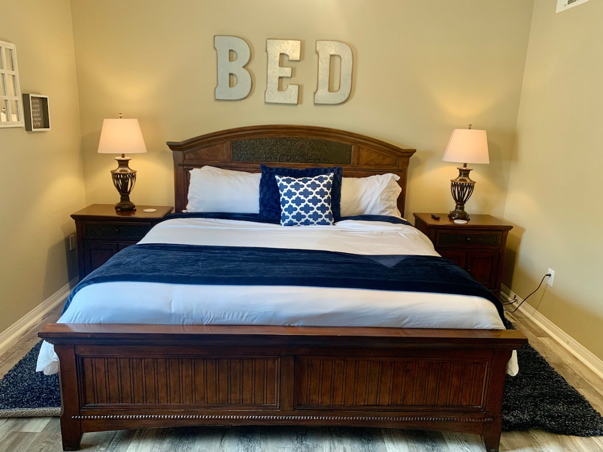 Rahat zemin katta 2 yatak odası 1KB/1QB 1 Queen Sleeper Kanepe 2 tam banyo İyi döşenmiş mutfak. Ünitede tam boy çamaşırhane. Ücretsiz kablosuz internet bağlantısı. Yaşam alanında ve yatak odalarında akıllı 4K TV'ler HOA tarafından sağlanan kablolu TV Alexa evde! Size havayı söyleyebilir, en sevdiğiniz şarkıları çalabilir, hatta bir şaka bile yapabilir!