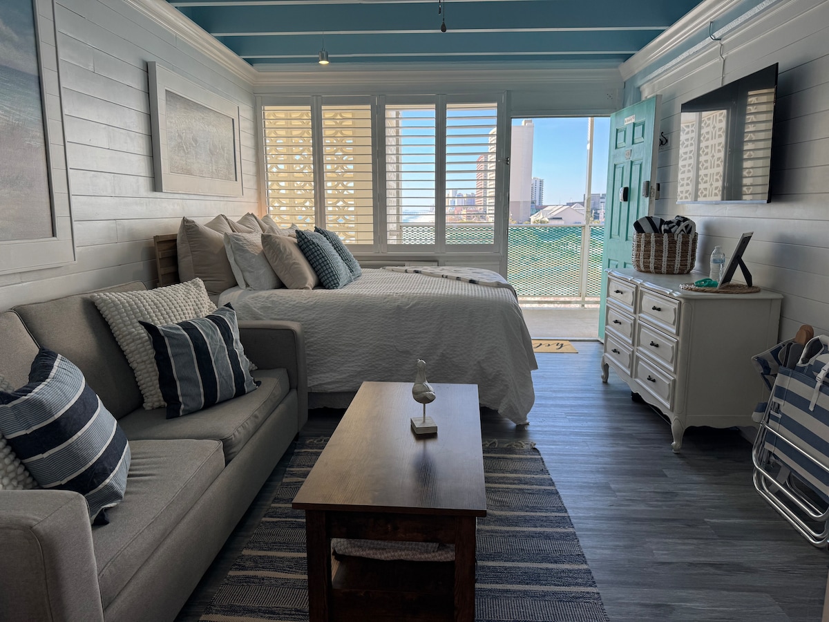 Dünyanın en güzel plajlarından birine bakan özel balkonlu, yeni yenilenmiş ikinci kattaki okyanus manzaralı stüdyo daire, muhteşem gün batımlarının tadını çıkarmak için king-size yatak ve şezlonglar. Güzel, fayanslı duş ve yeni olanaklar. Kablolu 50 inç TV ve ücretsiz kablosuz internet bağlantısı. Tam donanımlı bir mutfağa ve tüm mutfak gereçlerine sahip olmanın rahatlığından yararlanın. Uyanın ve özel balkondan gün doğumu ve kahvenizin keyfini çıkarın. 15 Mart-31 Ekim - 2 ücretsiz şezlong ve şemsiye (günlük 45 $ değerinde).