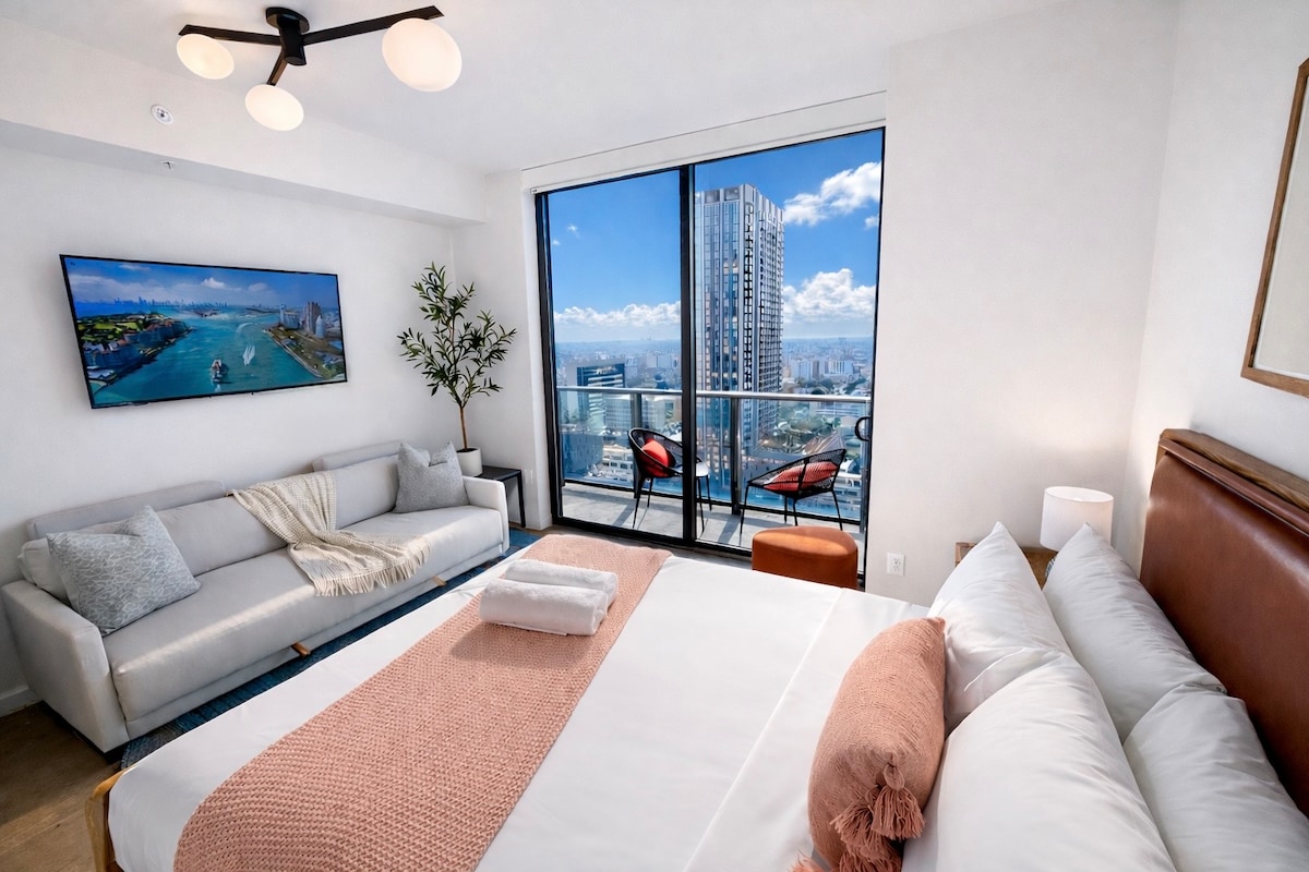 Miami şehir merkezinin göbeğinde, 5 misafire kadar konaklayabileceğiniz bu şık ve modern mekânda kalın. Konfor ve rahatlık için tasarlanan bu davetkar birim, rahatlama ve şehir enerjisinin mükemmel bir karışımını sunar. Hem iş seyahatleri hem de unutulmaz Miami kaçamakları için ideal olan birinci sınıf konumun keyfini çıkarırken en iyi restoranlara, alışverişe, gece hayatına ve önemli turistik noktalara yürüyün. Şehrin en iyi yönlerini kapınızın hemen önünde deneyimleyin.