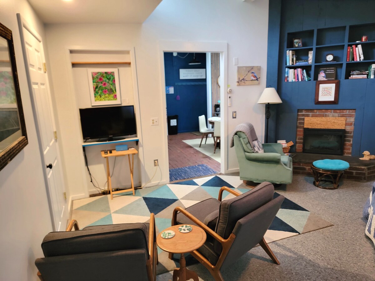 Purple Door Cottage, Middlebury'nin göbeğinde, huzurlu bir yan sokakta bulunmaktadır. Tamamen yenilenmiş, her yerde klima ve ısıtıcı, birçok konforlu yatak, ızgara ve ateş halkalı harika bir teras, hızlı kablosuz internet bağlantısı, ebeveynler için kral yataklı yatak odası, 1 kral yataklı eğlenceli misafir odası, 1 tam ve 1 ikiz yatak, tam banyo ve 1/2 banyo. Restoranlara, mağazalara, marketlere ve hatta üniversiteye yürüyebilirsiniz! İnanılmaz derecede iyi tasarlanmış ev, bir çifti veya kalabalığı rahatlıkla ağırlayabilir! Yepyeni 55 inç akıllı TV, yeni yataklar, nevresim takımları, kanepeler vb.