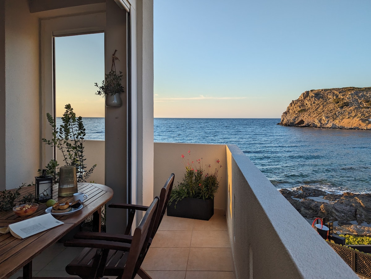 Elounda'nın merkezinden tam olarak sadece 3 dakika kuzeyde bulunan bu güzel modern daire, kristal mavi sularıyla Mirabello Körfezi'nin hemen kıyısında yer alır ve hatta cüzzamlılar yerleşimine dönüşen ünlü Venedik kalesi olan Spinalonga Adası'nın manzarasına sahiptir. 3 kişiye kadar barındırabilen bu yer, hem dinlendirici bir yüzme tatili isteyen bir aile hem de Elounda'nın gece hayatının tadını çıkarmak isteyen insanlar için idealdir.