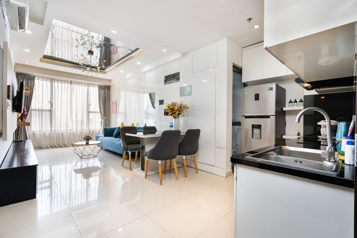 Luxury 5* The Opera Residence Corner Apartment by ChiHome - River View Bason District 1, The LandMark 81, The Galleria, The Mett Office, District 2 Sala Thiso Mall. - Kule B, Scala, Seviye 1x birim 10 - Boyut: 70 m2 (köşe ünitesi) - 2 yatak odası, 2WC, 2 -4 kişi konaklayabilir. - Netflix ve YouTube ile 65 inç Akıllı TV - Kanepe, koltuk, sehpa. - Yemek masası 4 sandalye - Tam donanımlı mutfak aletleri. - Yüksek hızlı kablosuz internet mevcuttur. • Tüm ev için klima. - Binaya 7/24 erişim.