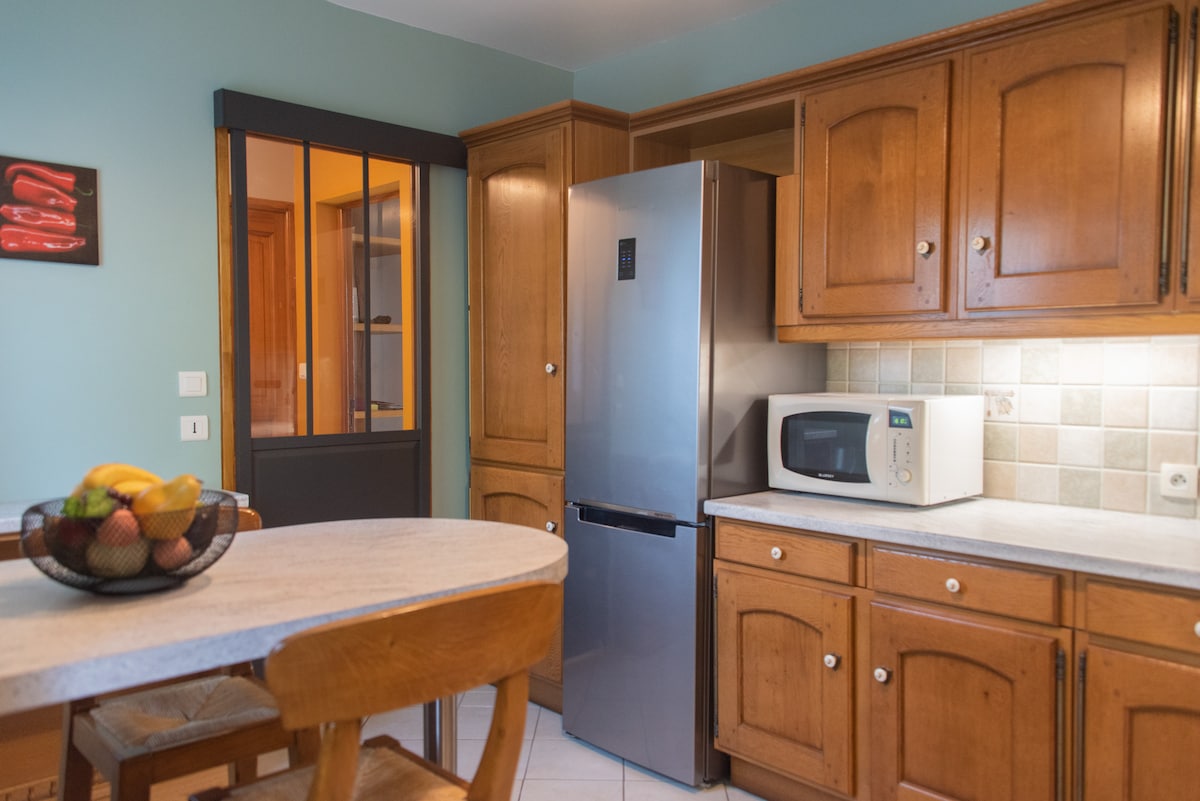 Ormanın göbeğinde, teraslı 4000 m²' lik kapalı arazide bağımsız 90 m² ev. Otomatik kapı, 2 yatak odası, biri zemin katta, şömineli büyük aydınlık oturma odası ve 160 cm çekyat, mutfak, büyük duşlu banyo. Komple ekipman: bulaşık makinesi, çamaşır makinesi, kurutma makinesi, fırın, mikrodalga fırın, kahve makinesi, 4 G, şezlonglar, TV, dağ bisikleti... Çok güzel bir ortam, 3 gables, Fontainebleau ve Milly'nin Ormanı yakınında doğa konaklaması. İdeal aile ....