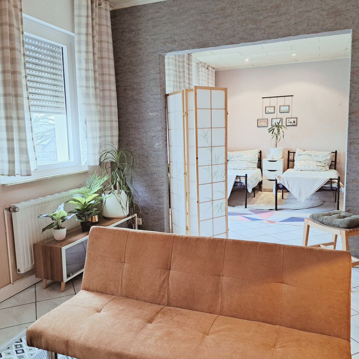 Minden'in göbeğinde 25 m²'lik şık şehir dairesi – çift kişilik yatak, akıllı TV ve yemek/çalışma alanı ile modern mobilyalı. 125 Mbps'ye kadar yüksek hızlı kablosuz internet bağlantısı dahildir. Buzdolabı, indüksiyonlu ocak ve mini fırın bulunan küçük mutfak, duş ve havlu bulunan banyo. Restoranlar, kafeler, eski şehir ve tren istasyonu yürüme mesafesindedir. Mükemmel merkezi konumda ama sessiz bir dinlenme yeri.