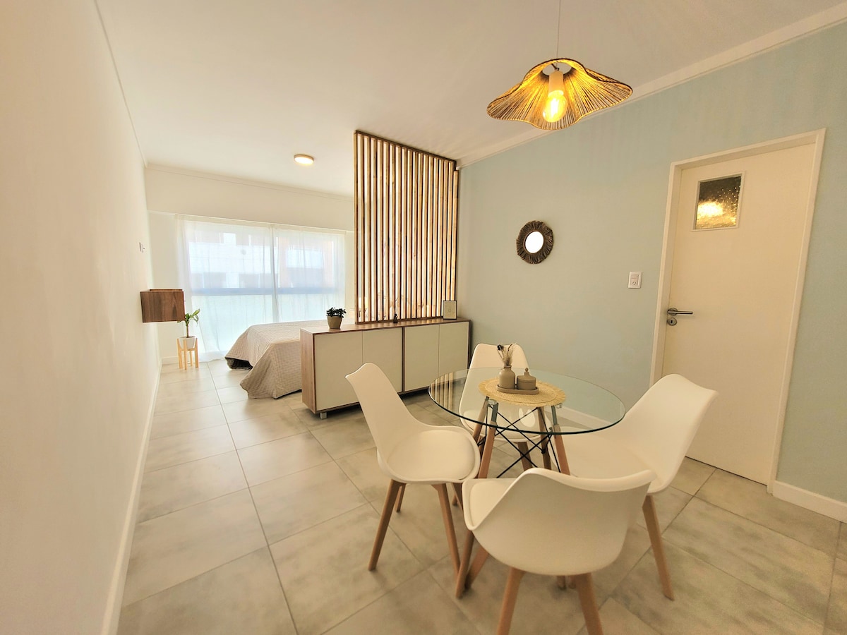 Departamento de Ensueño, con Vista Panorámica al Mar Descubre este hermoso departamento de 2 ambientes de estilo moderno y minimalisto en edificio premium podiendo recibir hasta 2 huespedes, ubicado en la tranquila y exclusiva zona de Constitución en Mar del Plata. Disfruta de vistas impresionantes del mar y la costa desde todas las ventanas del departamento habitacion, living y cocina y respira el aire del mar en su amplio balcón. internet de alta velocidad Tiene cochera techada incluida