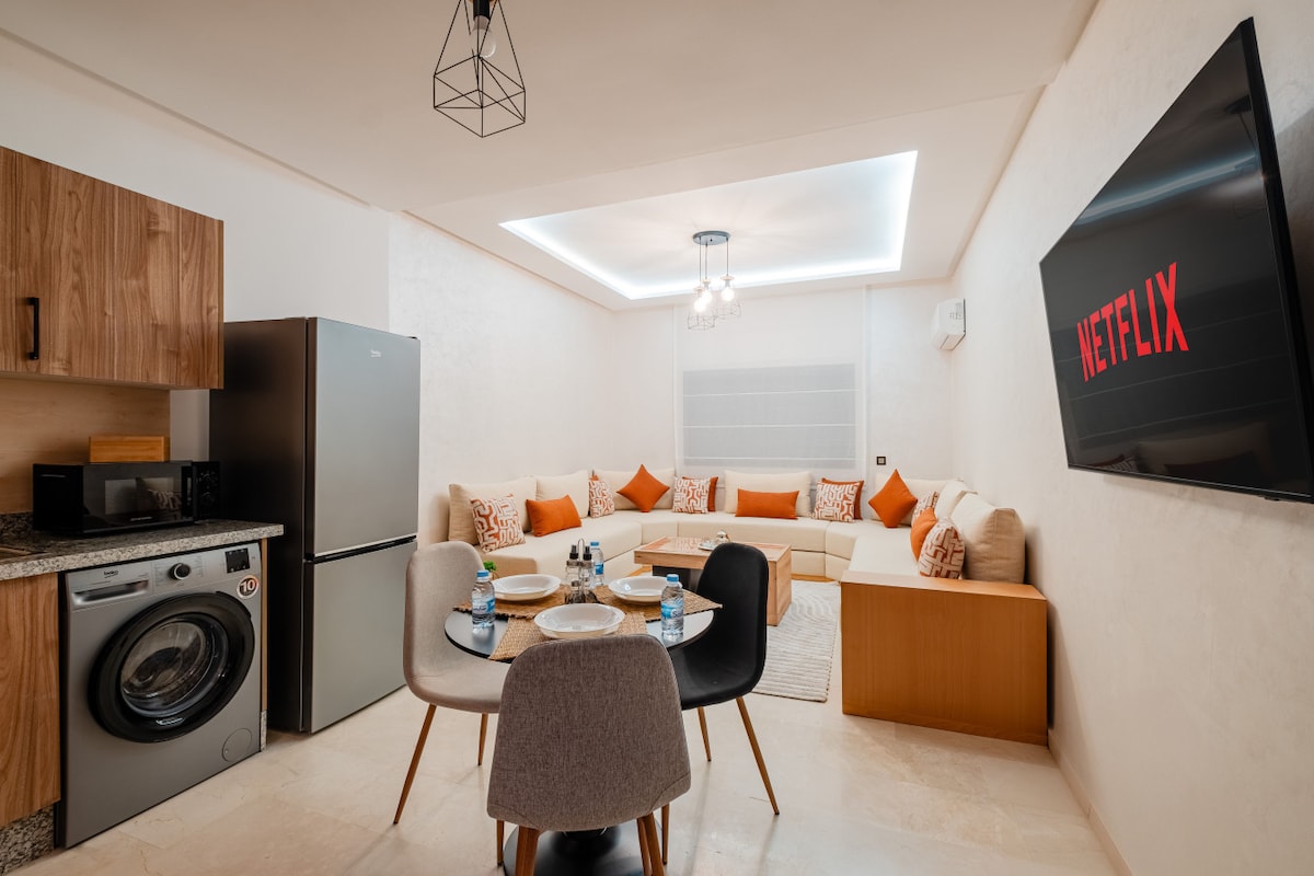 Hiç Marakeş'in canlı sokaklarında büyüleyici bir yolculuğa çıktığınızı hayal ettiniz mi? Hayal kurmayı bırakın ve yaşamaya başlayın! Bu türünün tek örneği olan daire, rezervasyon yapmanızı bekleyen mutlak bir mücevherdir. Tüm harika yerlere ve kolaylıklara ulaşabileceğiniz bir konumda bulunan konaklamanız büyüleyici bir deneyim olacağını vaat ediyor. ✔ Ücretsiz kahve ve çay <3 ✔ Hızlı kablosuz internet bağlantısı. ✔ King boy yatak ✔ Ücretsiz çamaşır makinesi ✔ En kaliteli yatak takımı "Beckendorff" ✔ Özel kapalı yüzme havuzu ✔ Büyük akıllı TV