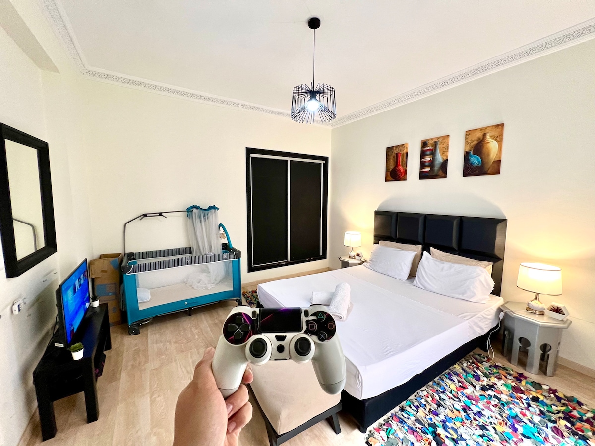 Şık 1BR Gueliz | PS4 | Mağazalara ve trene birkaç adım