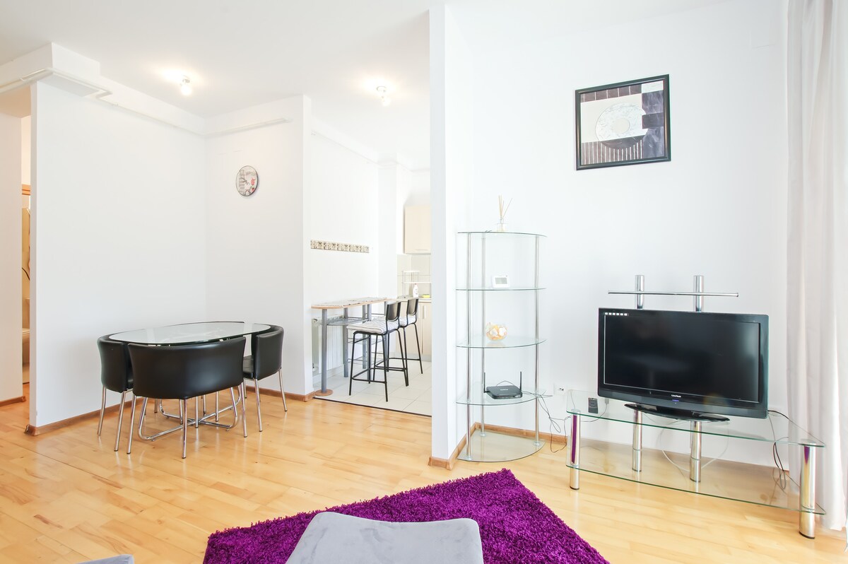 Şehrin göbeğinde, modern tasarımın konfor ve zarafetle buluştuğu şık ve konforlu bir daireye hoş geldiniz. Her ayrıntı, sıcak ve davetkar bir atmosfer yaratmak için özenle seçilmiştir. Dinlendirici ve unutulmaz bir şehir kaçamağı için mükemmeldir: •Geniş 2 odalı daire • Modern mobilyalarla tamamen döşenmiştir. •Tam donanımlı mutfak. • Çekyata dönüştürülebilen kanepe bulunan konforlu oturma odası. • Çift kişilik yataklı zarif yatak odası • Kablosuz internet bağlantısı, 2 akıllı TV, ücretsiz NETFLIX erişimi. • Temel olanaklara sahip banyo