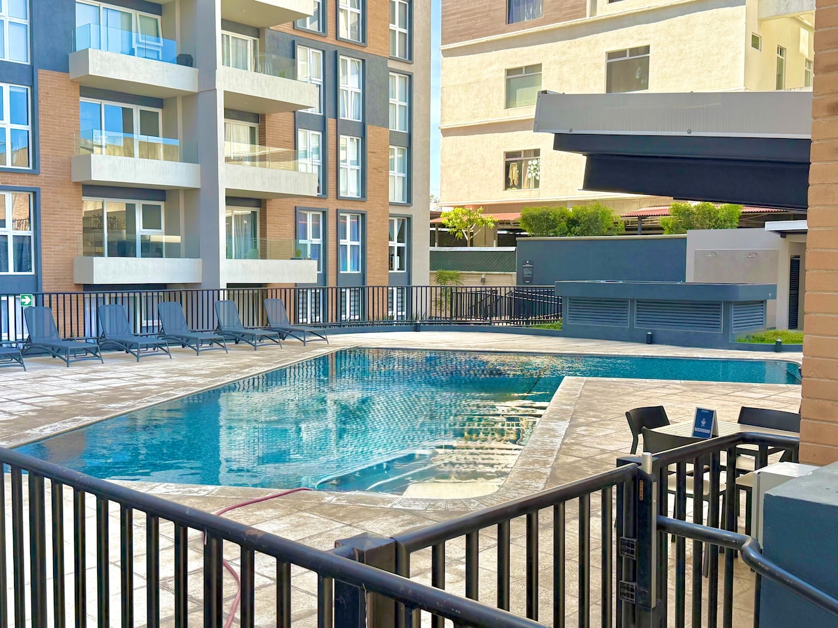 Bu benzersiz konaklama yerinde, ailenizle birlikte keyfini çıkarabileceğiniz ısıtmalı havuz, balkon, spor salonu, spor sahası gibi birçok alan bulunmaktadır. Ayrıca çok güvenlidir ve alışveriş merkezlerine birkaç metre mesafede merkezi konumdadır. Süpermarketler ve ana güzergahlara kolay erişim.