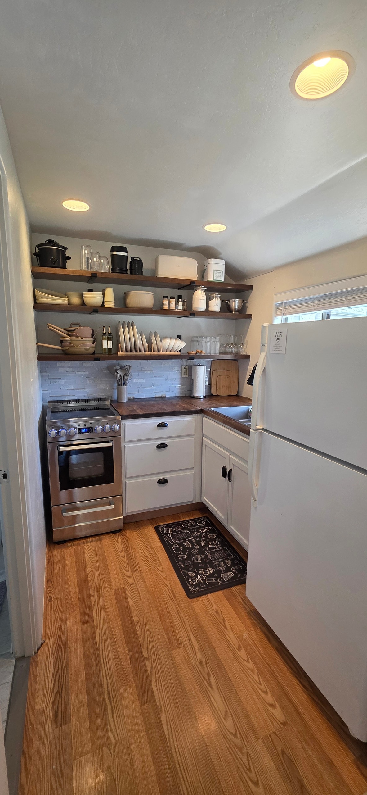 Spacious 972 sq ft over the garage guest apartment is all yours! Close to downtown Prescott headed northwest 7 miles (15 minutes) to a private gate. The gate opens and you’re in the National Forest where your retreat begins! Inside is a comfy cal-king bed, full kitchen and bath, laundry, two eating areas, two sitting areas, desk, pellet stove, mini-split heat and cool. You cannot book this apartment automatically. You must communicate direct with the owner. Non smoking, non-drinking guests.