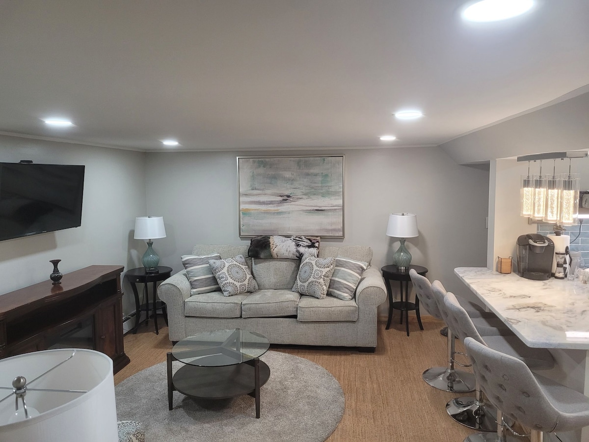A spacious, modern studio with a full kitchen, dining area, WiFi, BBQ, washer/dryer and TV. This is the ground level unit of a two unit property. Located minutes from the Cooperstown Dreams Park baseball camp, Otesaga Hotel, the National Baseball Hall of Fame and Ommegang Brewery by car. Hartwick College and SUNY Oneonta are 25 min. June through September the apartment books on a six day rotation in coordination with the Cooperstown Dreams Park tournament schedule.
