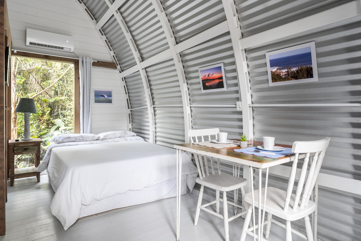 Ağaç ev tarzı kulübe, panoramik manzara, doğa ile çevrili olması bu özel kulübenin farkıdır! Ağaç hattının üzerinde bir balkonla, okyanusun, yerli ormanın, kristal berraklığındaki kanalın ve dost canlısı bir balıkçı köyünün cennet gibi manzarasına sahip olacaksınız. Tepede arabalara erişim yoktur, bu da burayı doğa severler, maceraperestler ve yürüyüş ve su sporlarını sevenler için mükemmel bir yer haline getirir. Plaja, otoparklara, restoranlara ve toplu taşımaya 15 dakika yürüme mesafesinde.