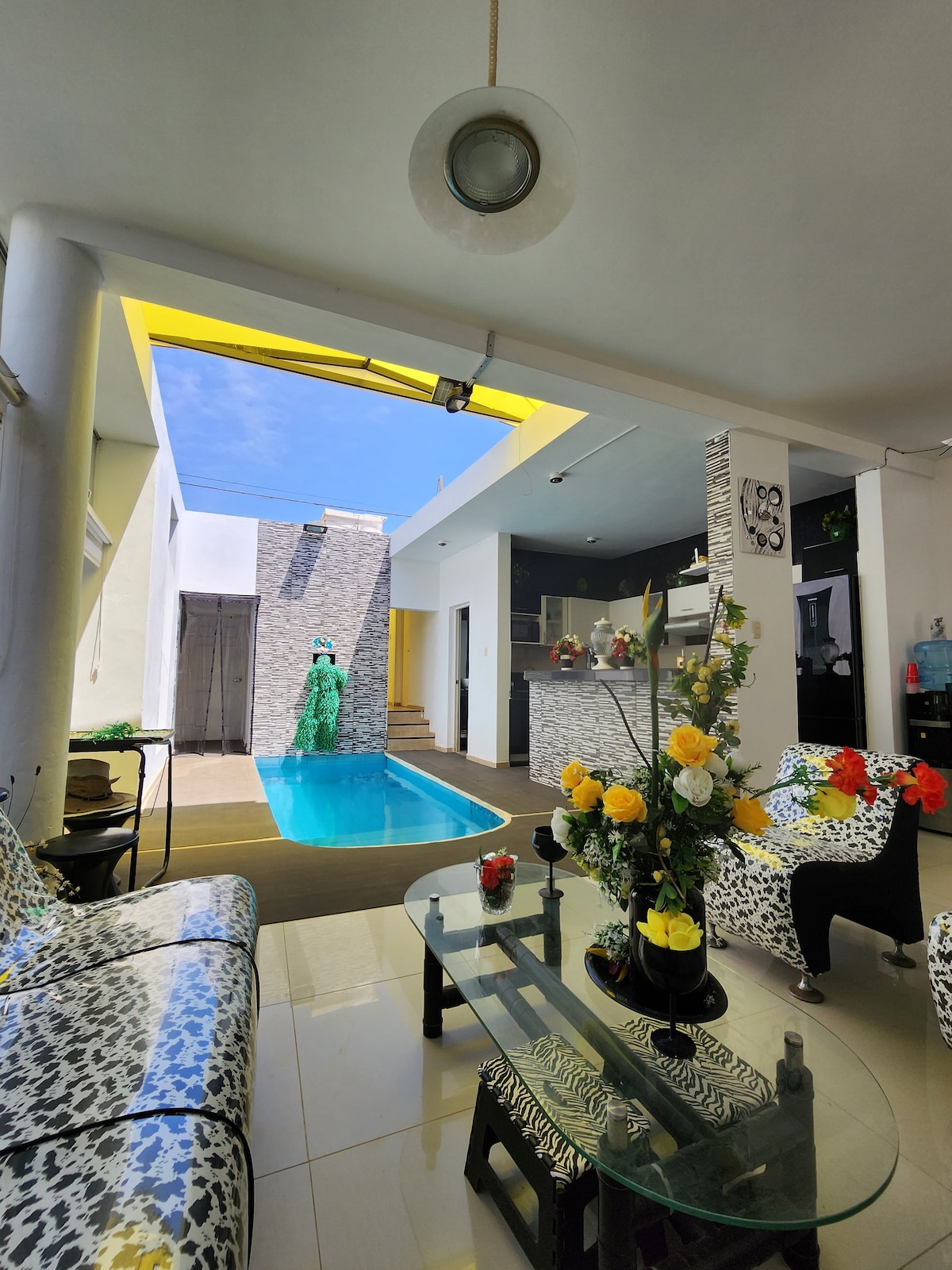 Hermosos y elegantes espacios en casa con piscina, cocina, lavado, sala, cine y jardín. Cerca de la playa, al lago y al centro de Mejía (Iglesia, mercado, tiendas)