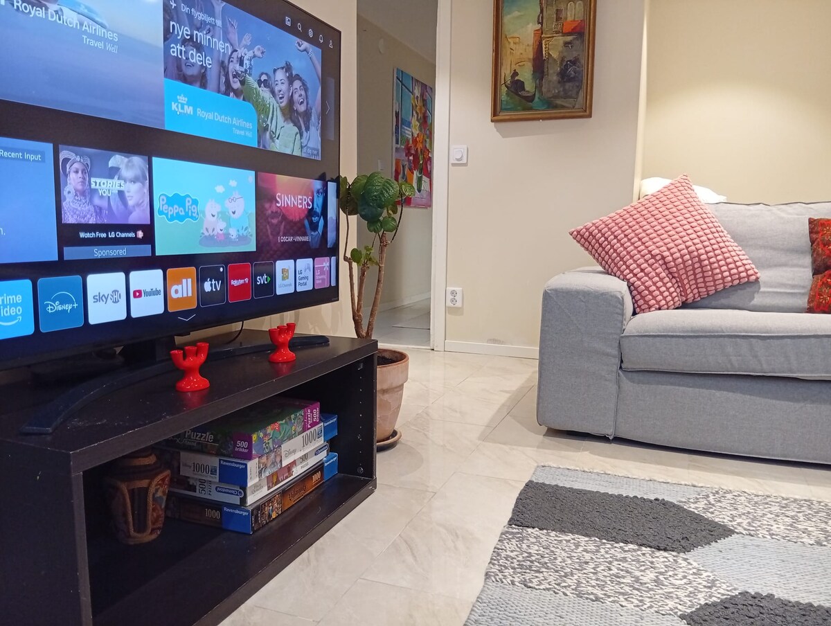 Mölndal'da pitoresk bir yerleşim alanında, Göteborg yakınlarında merkezi konumda büyüleyici 65 m2 bodrum katı dairesi. Yatakları yapıyoruz ve daireyi ekstra ücret almadan temizliyoruz. Bulaşık makinesi ve oturma alanı olan bir mutfak bulunmaktadır. Biri konforlu çift kişilik yataklı, biri iki tek kişilik yataklı 2-3 yatak odası bulunmaktadır. Oturma odasında tek kişilik bir yatak ve gerekirse büyük giriş odasında ekstra çift kişilik bir yatak bulunmaktadır. Kablosuz internet bağlantısı olan dairede yaşayacaksınız. 25 yaşından büyük misafirleri ağırlıyoruz. Biz ev sahipleri üst katta yaşıyoruz.
