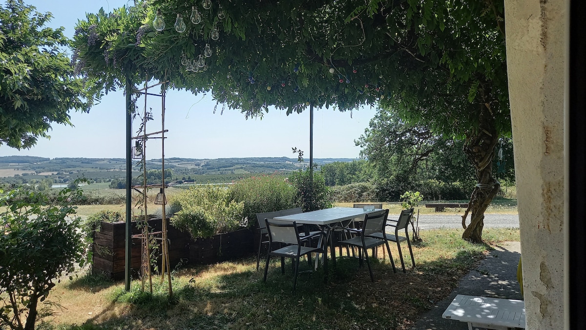Bu ferah, aydınlık ve huzurlu konaklama yerinde endişelerinizi unutun. Huzurlu bir kırsalda oturun, vadinin çok sevilen manzarasının tadını çıkarın, Lot - et - Garonnaise doğasında gençleşin. Ev sahiplerinizle tuzlu su havuzunu paylaşabilirsiniz (mevsime bağlı olarak). Oradan Haut Agenais'in muhteşem kalçalarını ziyaret edebileceksiniz; Monflanquin'e 5 km, Villeréal'e 8 km ve Monpazier'e 20 km...