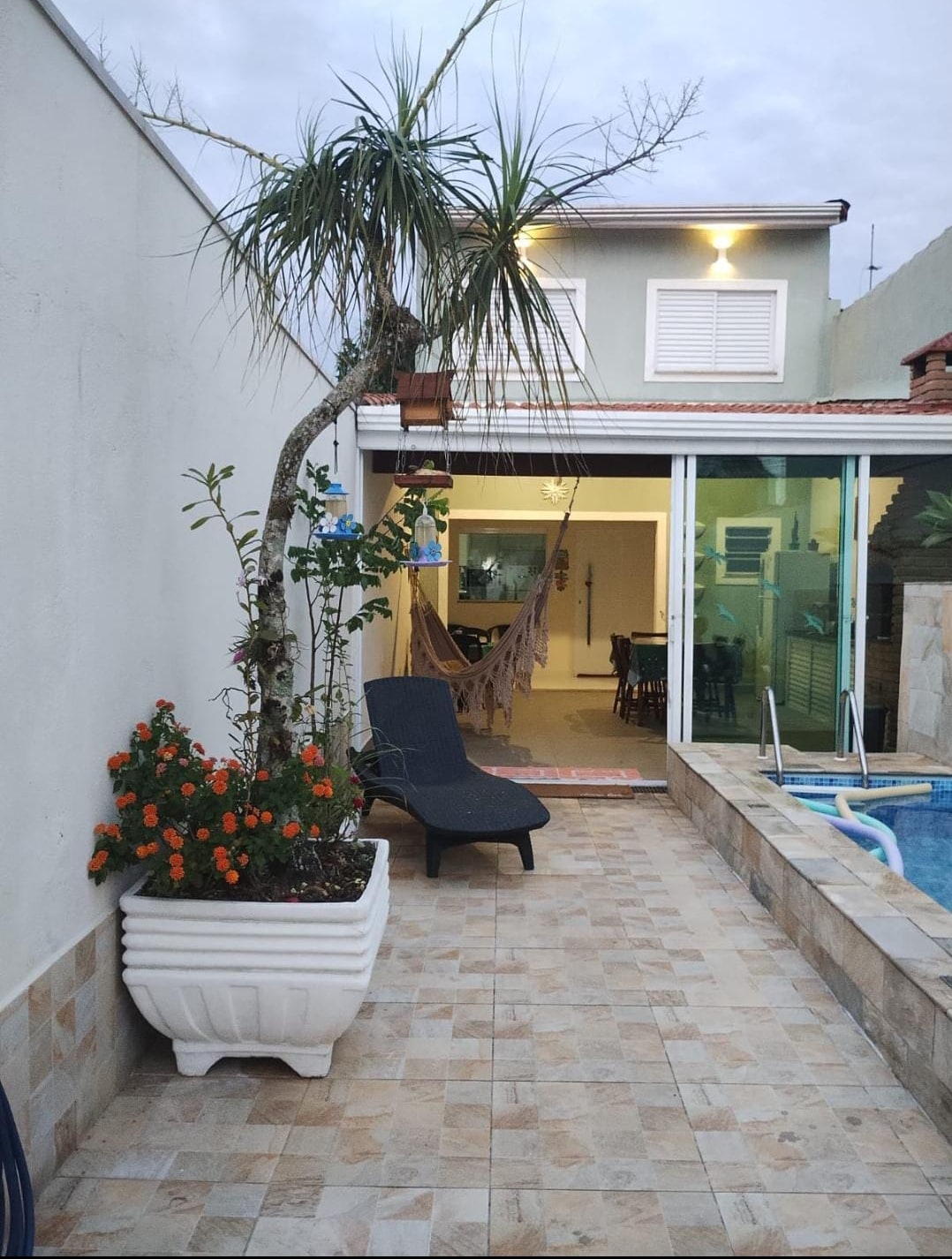 Mongaguá'da sahile 90 metre uzaklıkta güzel bir ev. Havuz kenarında barbekü veya yemek yapmak için havuz, barbekü/fırın ve odun sobası ile mükemmel bir dış mekan. Bilardo masası ve masa tenisi masası bulunan oturma odası. Kablosuz internet bağlantısı NETFLIX Alarm sistemi Toplam 3 yatak odası (4 tek kişilik ve 2 çift kişilik yatak, ayrıca 7 ek yatak). Evde toplam 3 banyo bulunmaktadır. Ev, hareket kabiliyeti kısıtlı kişiler için mükemmeldir.
