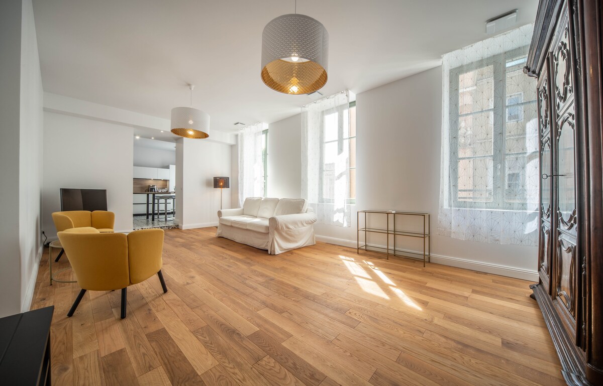 Klimalı bu çatı katı benzersizdir, Hospices'in hemen yakınında bir avlunun ortasında, tarihi merkezin tam kalbinde yer alır. Carnot Meydanı ve hatta Hospices çan kulesi üzerinde inanılmaz bir manzaraya sahiptir. Tamamen yeniledik ve kaliteli asil malzemelerle dekore ettik. 6 m yüksekliğinde, çok aydınlık, etkileyici katedral tavanı. Yakınlarda ücretsiz otopark, meydanda restoranlar ve mağazalar. Her şeyi var ve 24 saat giriş yapılabilir