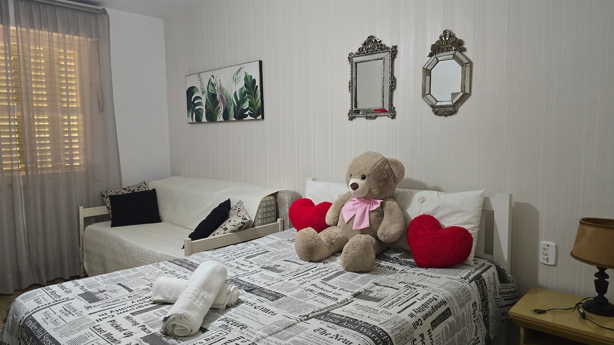 Águas'ın göbeğindeki küçük köşeniz (süper temiz!). 🏠✨ Pratiklik ve temiz bir koku mu istiyorsunuz? 510 numaralı daire doğru yer! Odak noktamız, dinlenmeniz için kusursuz bir alan. Merkezdeyiz: Her şeyi yürüyerek yapın! Sokakta fırınlar, barlar ve eczaneler var. Sunduğumuz şey: ✨ Hijyen ciddiye alınır. 📺 Çekyat, akıllı TV ve kablosuz internet bağlantısı bulunan oturma odası. 🛏️ Temiz yatak takımlı yatak odası (çift kişilik + tek kişilik). 🍳 Donanımlı mutfak, garaj ve asansör. 📍 Meydan ve otobüs durağına 10 dakika (650 m) mesafededir. Gelin! Hayat geçiyor!