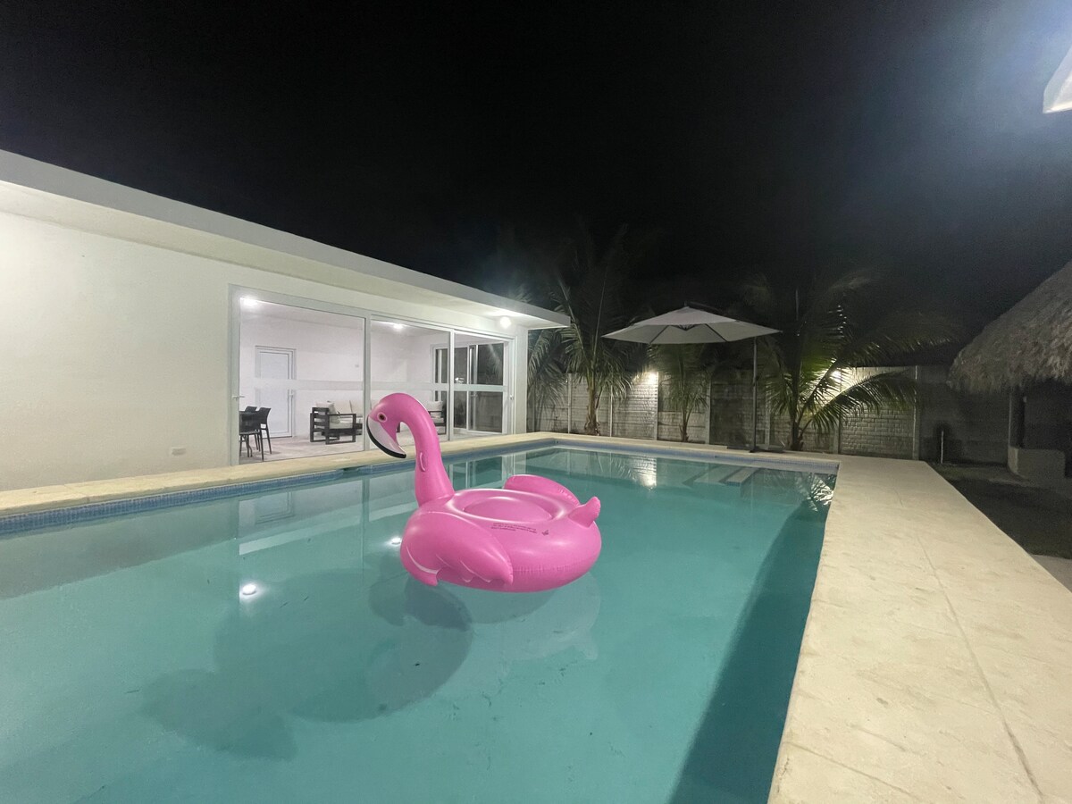 Monterrico plajlarında özel bir aile zamanının tadını çıkarın; mutlak GİZLİLİĞE sahip bir aile evinde, bir çevre duvarı, erişim kapısı, hamak çiftliği ve evde klima ve oda başına 2 çift kişilik yatak ile 2 yatak odası olan güzel ve ferahlatıcı bir ÖZEL havuzu vardır. 1 tam banyo. Özel banyolu 1 bungalov ve 3 yatak. Havuza açık geniş sosyal alan, donanımlı mutfak. Mobilya oturma odası, yemek odası , mutfak. Yüzme havuzunun yanında güzel bir sosyal alan