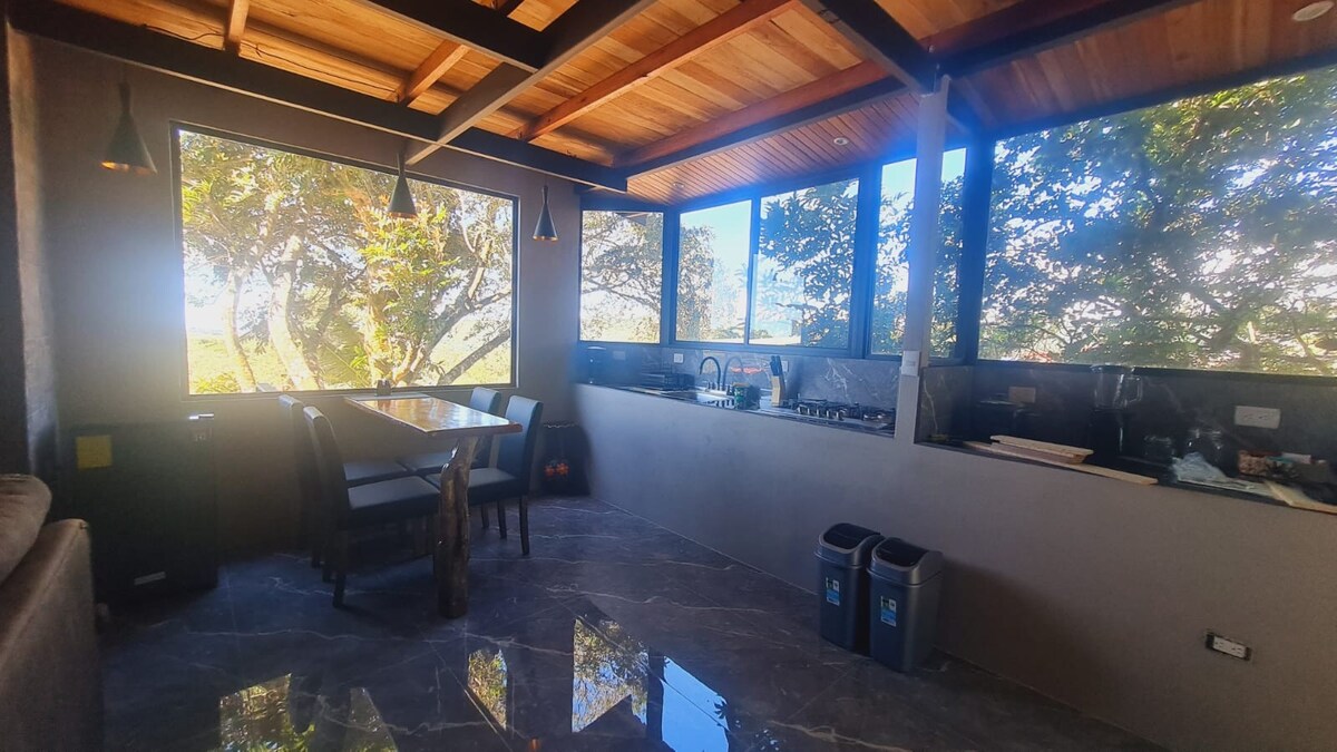 Este elegante alojamiento es ideal para los amantes de atardeceres, tranquilo, con la belleza de la montaña en su parte posterior, espacioso, amplios balcones en sus dos plantas, área de cocina, camas súper confortables, con todas las necesidades que puedas requerir, a 5min de supermercados, gasolinera, 15 min del parque nacional Monteverde, canopys, caminatas nocturnas, puentes colgantes, cabalgatas, y de Santa Elena en coche.