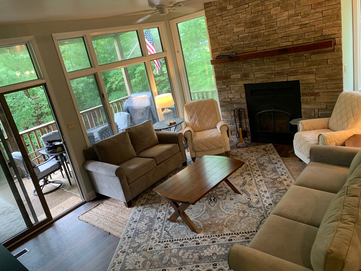 Gelmiş geçmiş en güzel derelerden biri! Gurgling ve kristal berraklığında King yatak, kanepe yatak, çatı katı yatak odası, king yatak ve kanepe yatak. Oturma odasında 2 deri kanepe. Granit tarzı duş ve tam banyo. Bonus tamamen tüylü müştemilat! Yürüyüş, yüzme, balık tutma, ızgara! Direct TV lütfen mülkümüzde ve derede kalın. Kuyu suyu filtre sistemi Buz makinesi! Şişe su getirmek isteyebilir. Rahatlamak, dinlenmek, derede yüzmek için mükemmel bir yer. Ağaçlar ve geyiklerle çevrilidir. Köpek ücreti yok! Dereye güzel, geniş verandaya genel bakış
