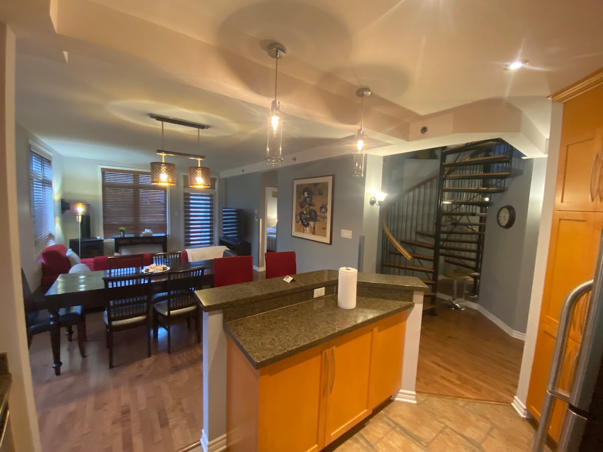 YUL Havalimanı yakınında modern konfor! Bu şık inziva yeri, YUL'a sadece 15 dakika mesafede, modern bir konfor cenneti sunuyor. Uzun bir günün ardından dinlenmek için tam donanımlı bir mutfak da dahil olmak üzere dinlendirici bir konaklama için ihtiyacınız olan her şeyi bulabilirsiniz. Arkanıza yaslanın, ücretsiz bir fincan kahve veya çayın tadını çıkarın ve en sevdiğiniz Netflix şovunu izleyin. Şimdi rezervasyon yapın ve konfor ile tarzın mükemmel karışımını deneyimleyin.