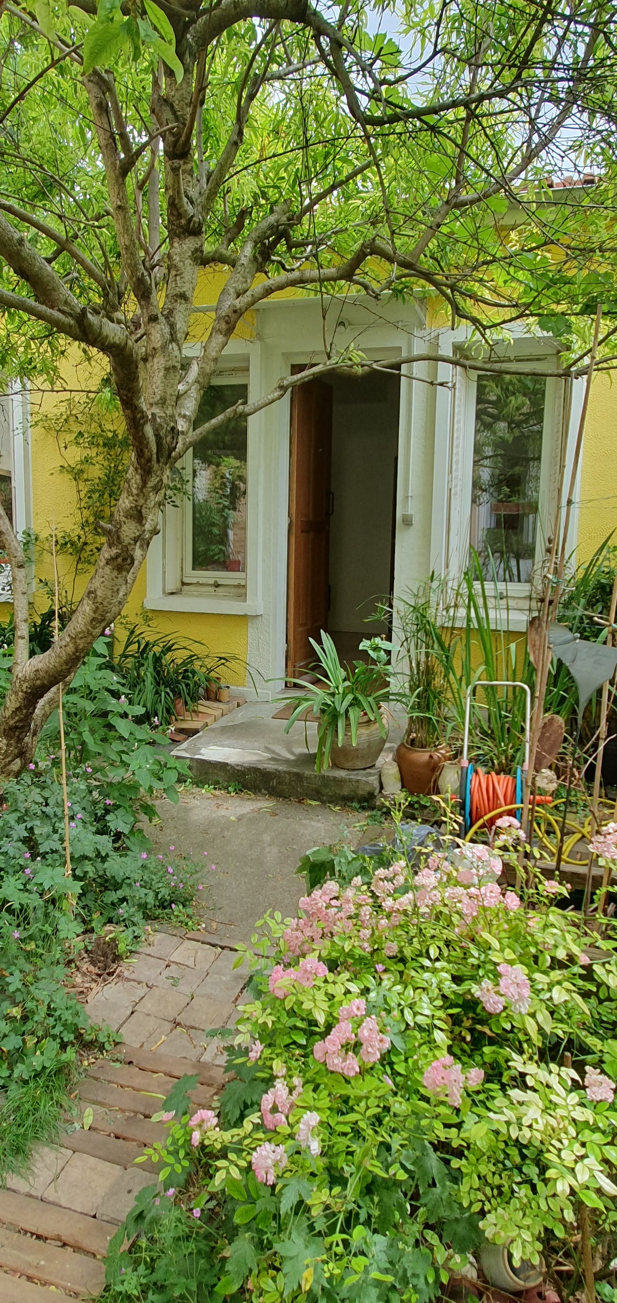 Küçük bir bahçesi olan yepyeni bir misafir evi