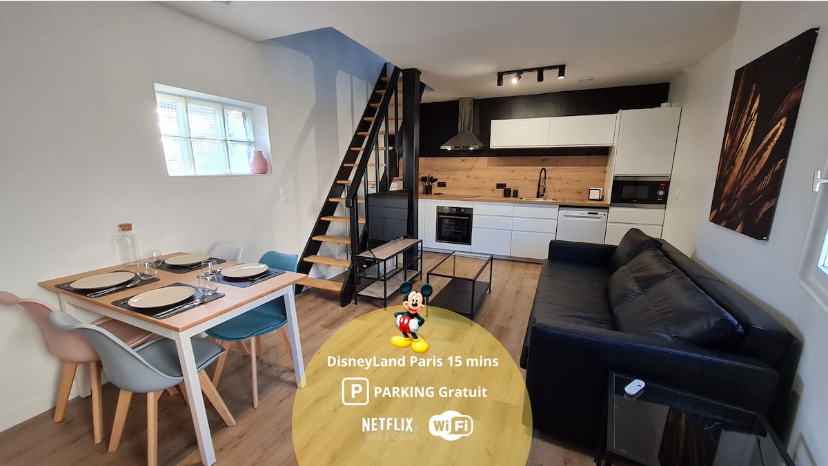 Disneyland Paris'e 8 dakika, Paris'e RER ile 30 dakika mesafede, 6 kişilik modern ve ferah bir çatı katı olan Dream Factory'ye hoş geldiniz. Unutulmaz bir konaklama için zarif bir ortamın, asma katta özel bir sinemanın ve üst düzey ekipmanın keyfini çıkarın. 📍 Kolay erişim: Marne-la-Vallée – Chessy'ye🚌 otobüs (400 m), Disneyland Paris'e erişim (10 min) ve RER A (Paris'e 35 dakika). 🚗 Disneyland Paris arabayla 8 dakika mesafede. Ulusal ve uluslararası bağlantılar için 8 dakika uzaklıktaki Marne-la-Vallée TGV🚆 istasyonu.