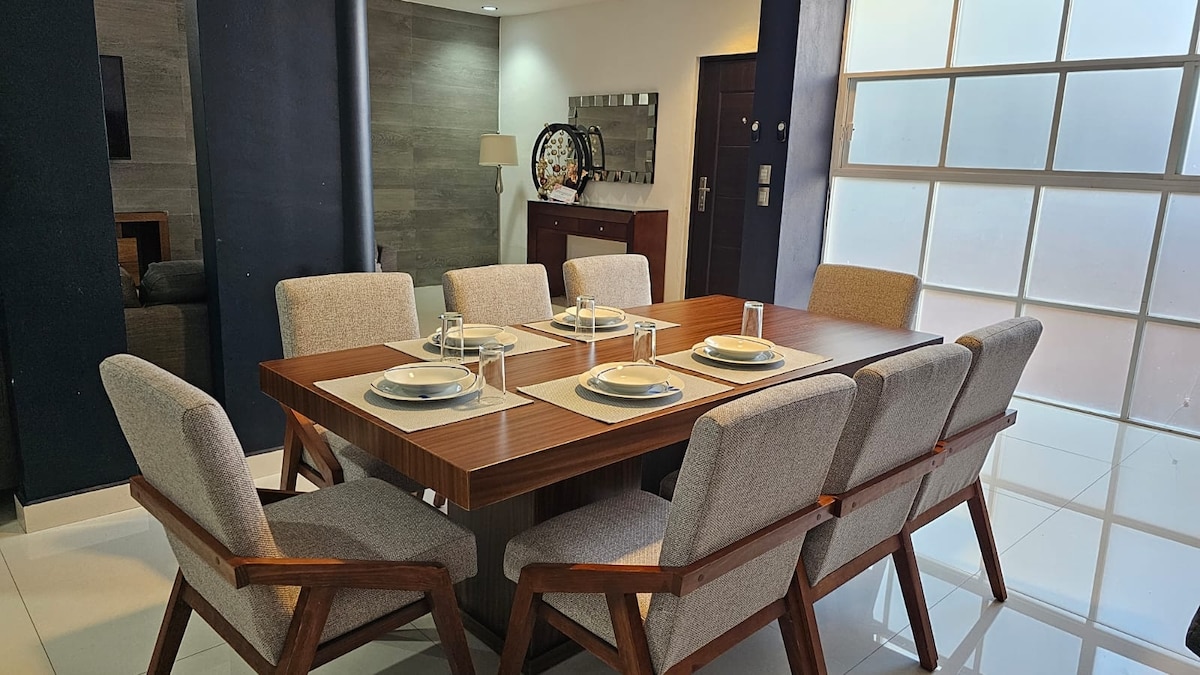 Disfruta de un moderno departamento en la exclusiva colonia Lomas de Santa María, Morelia. Cuenta con dos habitaciones (una cama king y dos individuales), tres baños y medio, cocina equipada con estufa, cafetera y microondas. Además, tendrás cochera privada, lavadora y secadora para mayor comodidad. Ubicado en una zona tranquila, a solo 15 minutos del centro histórico. Cerca de hospitales, escuelas, y centros comerciales. Ideal para familias o grupos que buscan confort y estilo.