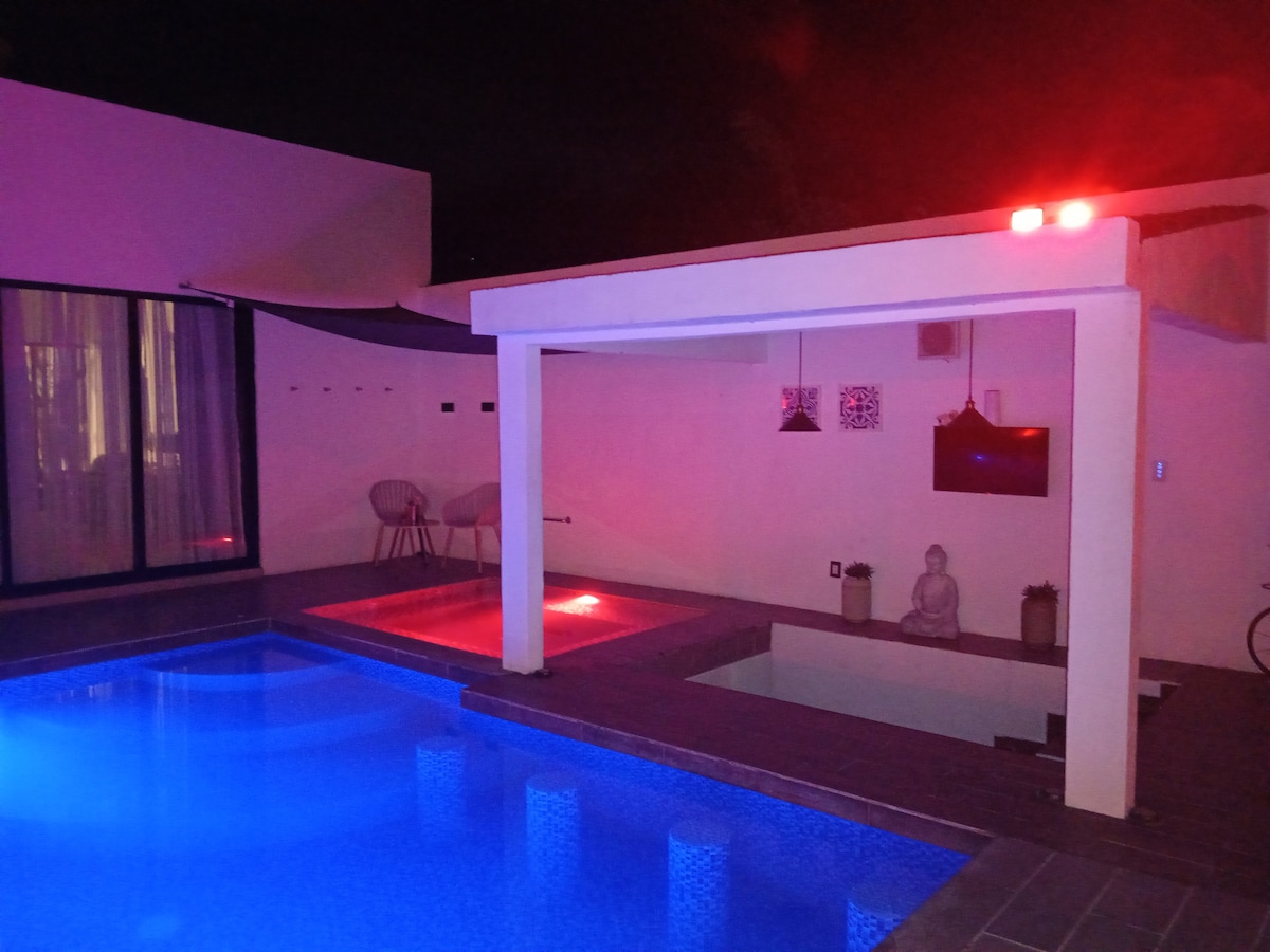 Gelin ve Cuernavaca'nın hava durumunun tadını çıkarın. Şehir merkezine sadece 3 dakika uzaklıktaki bir yerleşim bölgesinde bulunan güzel bir bungalov. Bir evin bulunduğu bir mülkün içinde bağımsız bir bungalov. Ortak alanlarda havuz, özel otopark, yüksek hızlı kablosuz internet bağlantısı ve rakipsiz bir manzara vardır. Bahçe ve havuz alanları özel olup, size ve arkadaşlarınıza özeldir. Havuzun ısıtıcısı yoktur. Burası dinlenmek için özel, sessiz bir alan isteyenler için harika bir yer.