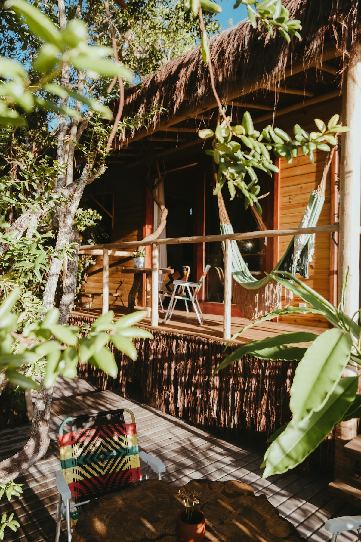 Canto do Moreré'deki Cabana Empipada, deniz kenarındaki yerli Atlantik ormanında, plajdan 15 metre uzaklıktadır. 15.000 m²'lik alanda, hepsi birbirinden uzakta olan ve yeterli mahremiyet sağlayan 7 konut bulunmaktadır. Kulübe, cibinlikli bir yatak odası, banyo ve minibar içerir. Doğa ile temas arayan bireysel maceralar veya çiftler için idealdir yerel hayvan ve bitki örtüsü ile benzersiz bir deneyim. Kütüphanemiz, wifi bağlantımız mevcuttur ve önceden haber verildiği sürece evcil hayvanlar kabul edilir!