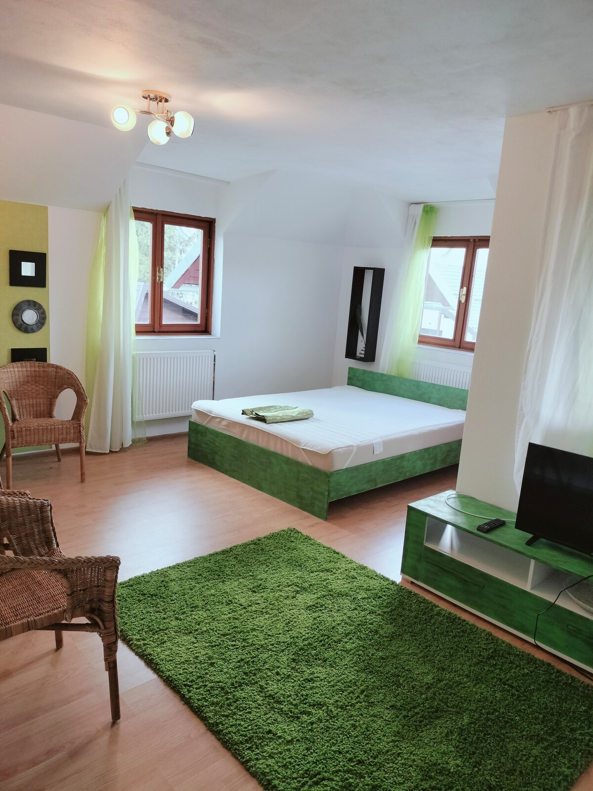 Discover the charm of Sinaia from the comfort of our centrally located apartment. Nestled in the picturesque landscape of Romania, our cozy retreat offers a perfect blend of modern amenities and traditional allure. Enjoy breathtaking mountain views, explore nearby attractions like Peles Castle, and unwind in the welcoming ambiance of this well-appointed space. Ideal for couples or solo travelers seeking a memorable getaway in the heart of Sinaia.