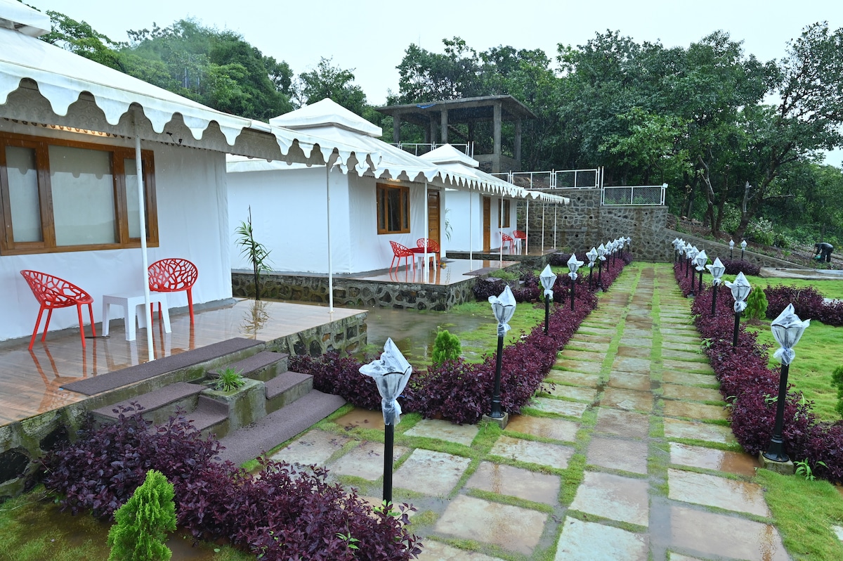 🌿✨ Reconnect with Nature in Style ✨🌿 Reconnect with nature in style at our exclusive 7,000 sq.ft. glamping retreat 🏕️ nestled on the scenic ridge of Karla’s serene mountains ⛰️🌄 This unique stay features two luxurious tents ⛺ Perfect for couples 💑 or small families, Seeking privacy 🤫, peace 🕊️ and panoramic mountain views 🌅 Let the rustle of leaves 🍃 the glow of lanterns 🪔, and the calm of wide-open skies 🌌 welcome you to a stay that's both grounding and unforgettable. ✨