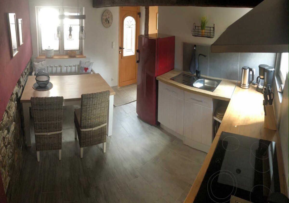 Yeni! Ortak çalışma alanının kullanımı Heidi Braun Cottage tarihi bir binadır ve 40 yılı aşkın süredir anıtsal tadilat için burada yaşayan son sakinlerin (Eyfel Baukultur Ödülü'nde mükemmel) adını taşıyor. Bugün, rahat kulübemiz, kalenin ve bira bahçesinin karşısındaki ortaçağ köy merkezinin ortasında yer alan kırsal kesimde tatiliniz için ideal bir başlangıç noktasıdır. Antika, modern mutfak ve banyo ile saf rahatlık sizi bekliyor.