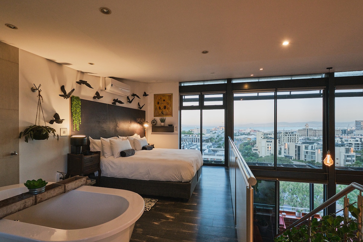 Şehrin yükseklerinden Cape Town'ı seyredeceğiniz bu özel inziva yerinde. Bu sessiz ve huzurlu yer, çağdaş mobilyalar, zeminden tavana kadar uzanan sürgülü pencereler, teras yürüyüşleri, Masa Dağı'nın panoramik manzarası ve özel bir yüzme havuzu ile dinlenebileceğiniz bir yerdir. Keyfini çıkarabileceğiniz iki katlı geniş bir alanınız var. Şehrin hareketliliğini ya da doğanın huzurunu deneyimleyin, her ikisi de daireden sadece birkaç dakika mesafede.