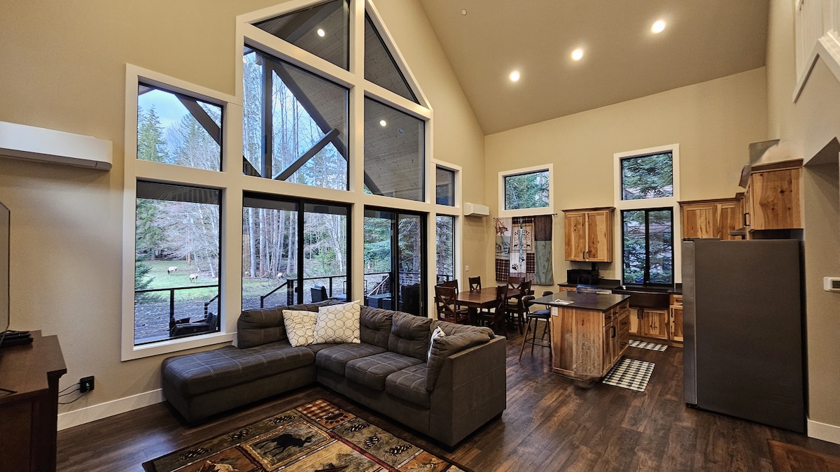 100 yıllık Douglas köknarlarından oluşan yüksek bir koruda yer alan bu özel tasarımlı ağaç ev, sizi yukarıdan ormanın dinlendirici güzelliğine daldırırken, lüks bir Mount Rainier kaçamağından bekleyebileceğiniz tüm olanakları sunar. Üst kattaki asma ağlı çatı katında kitap okuyun, en sevdiğiniz filmi izlemek için şöminenin önünde rahatlayın veya yazı masasında ilham alın. Yarım dönümlük kendi özel ormanında yer alan ağaç ev, yerel işletmelere yürüme mesafesindedir.
