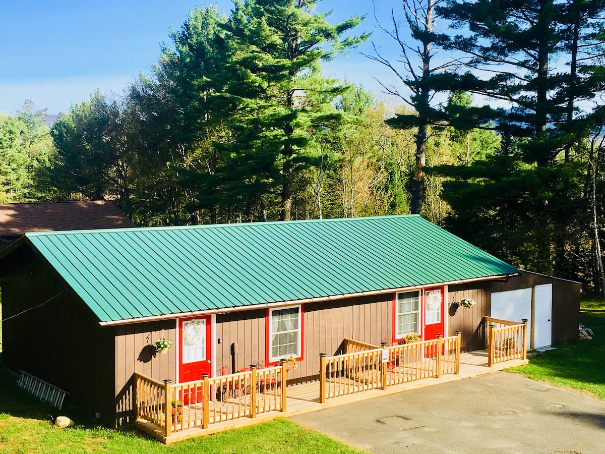 Lake Placid'e 30 dakika mesafedeki bu benzersiz dağ manzaralı mekân, Adirondack Zirveleri'nin eşsiz manzaralarını sergileyen özel bir kapalı terasa açılan konforlu, tenha 3 odalı bir misafir süitine sahiptir. Açık hava meraklıları, çiftlerin kaçamakları, evden çalışanlar veya sadece kırsalda huzurlu bir dinlenme arayanlar için ideal olan evcil hayvan dostu bir alan; gelin 25 dönümlük tarlalarımızın, ormanlarımızın, göletlerimizin ve özel nehir kıyımızın tadını çıkarın. Diğer teklifimiz: airbnb.com/h/adkretreat