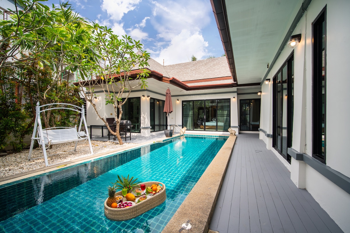 Chalong Plajı 3 yatak odalı 118 yeni Thai tarzı havuz tatil villası/hizmetçi hizmeti/aşçı/kahya/kahvaltı/spa Thai/seyahat özelleştirme/havaalanı karşılama hizmeti