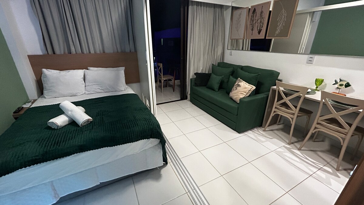 Açık mutfak, çekyatlı oturma odası, klima, akıllı TV, balkon ve çift kişilik yataklı yatak odası, klima ve dolap bulunan rahat daire. Tüm mutfak gereçleri, mikrodalga fırın, blender, sandviç makinesi, buzdolabı, kahve makinesi, tabak ve air fryer ile mutfak. Enxoval Gazlı Isıtmalı Duş Kablosuz internet bağlantısı Çatıda su aynası, deniz manzarası, gün batımı tarafında yetişkin ve çocuk havuzu bulunan dinlenme alanı Maraca Beach II, plaja 50 m mesafede, asansörlü, 24 saat kapı görevlisi ve Beira Mar'dan da erişilebilir.