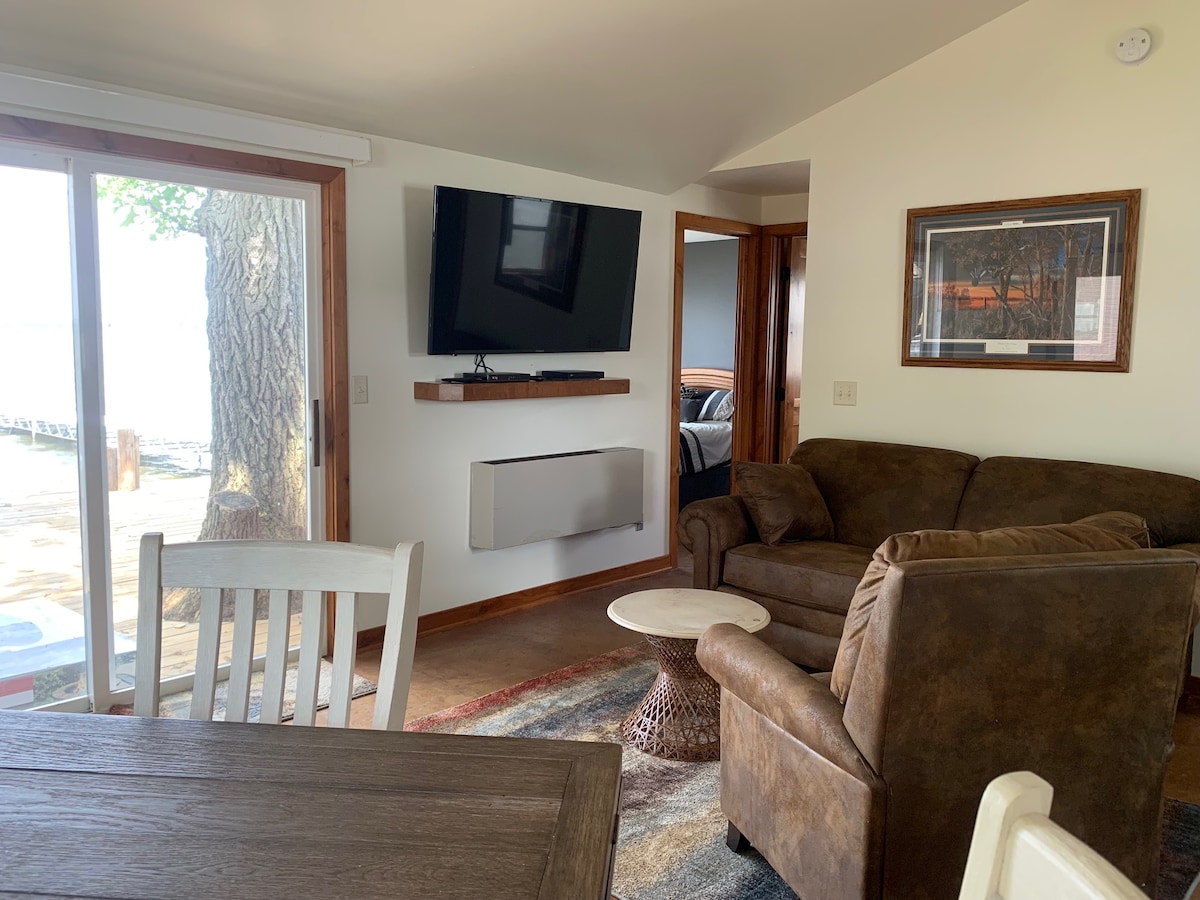 Enjoy your hot tub & firepit on your private patio. Play billiards, quiet walks in the State Park, ride bike, kayak, fish, SUPs, swim, & yard games! Nearby Casey Jones trails & State Park! Inquire about availability of icefishing equipment. 2 BDR w/ 5 beds for 6 adults (2 Queen/3 XLTwin). A great couple's escape, friends reunion & families! Hike, bike & paddle! Nearby: Lakeview restaurants, Vineyard, Train Museum, Laura Ingalls Museum, & Race Speedway.
