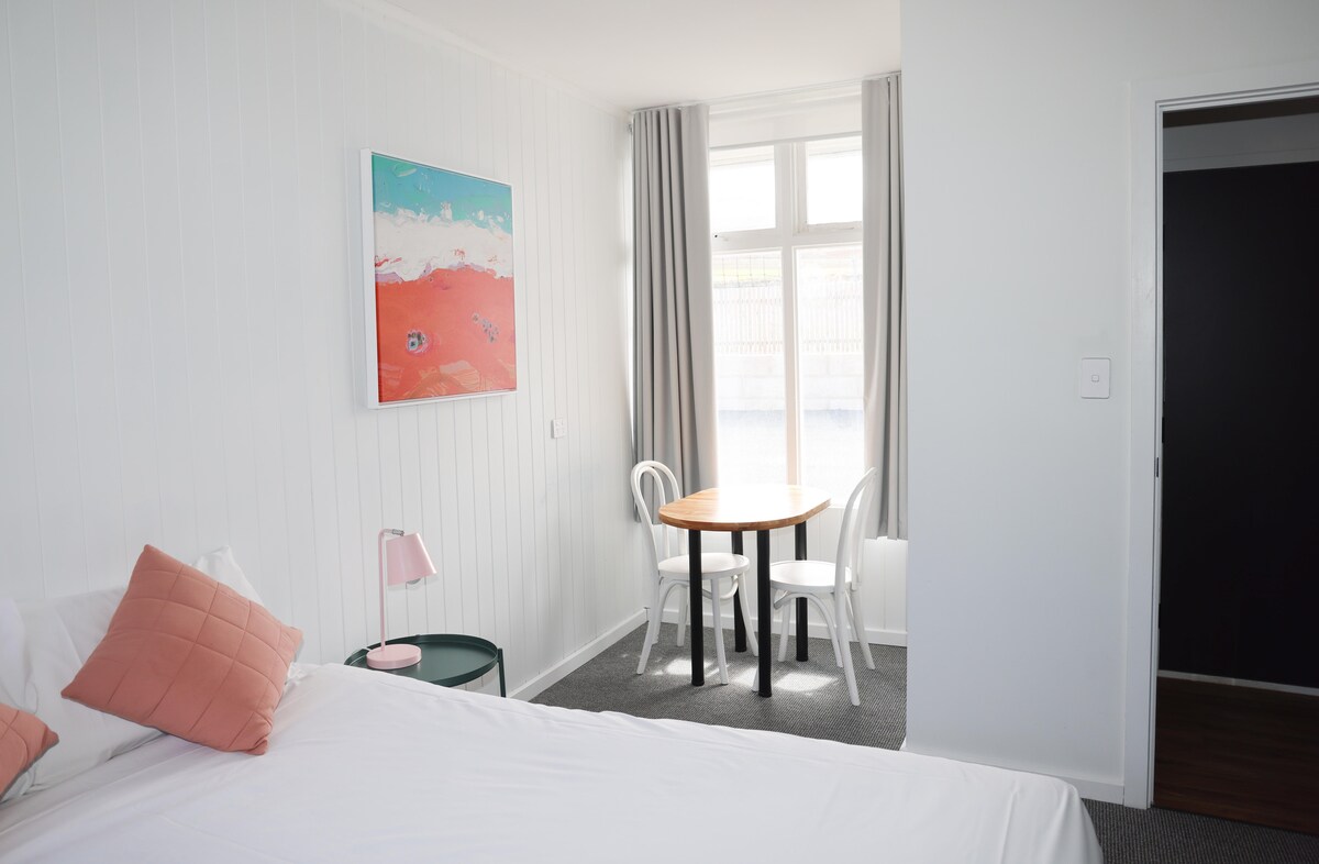 Stylish Queen Room A simple and cozy space for couples or solo travellers, this Standard Queen Room offers everything you need for a restful stay in the heart of Robe. Room features: Comfortable queen bed (sleeps 2) Private ensuite bathroom Tea and coffee-making facilities Reverse-cycle air conditioning and free Wi-Fi Please note: this room does not include ocean or harbour views, but you’re just a short walk from Robe’s beautiful coastline, cafes, pubs, and local shops.