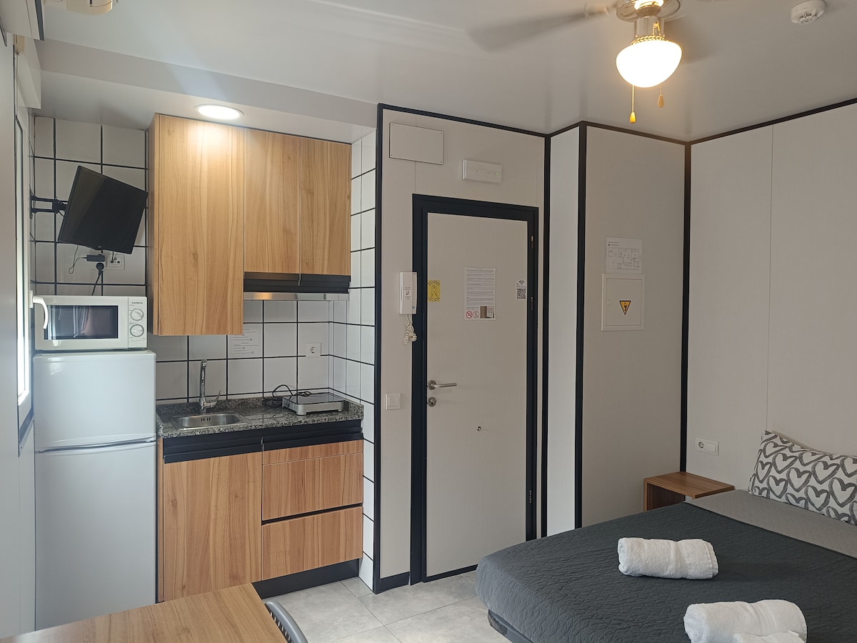 Bu konforlu stüdyo, iki kişiye kadar 17 metrekarelik bir alan sunar. Çift kişilik yatağı (150x200) ve duşlu modern banyosu bu konaklamayı Madrid'i deneyimlemek için mükemmel bir yol haline getiriyor. Odada ayrıca küçük bir mutfak ve yemek masası bulunmaktadır, bu nedenle maksimum konfor ve minimum stres için ihtiyacınız olan her şeye sahip olacaksınız.