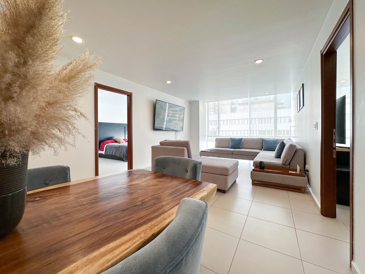 Enjoy a fully equipped kitchen, high-speed internet, comfy king-size and a sofa bed, and two TVs, all complemented by a great view. The condo offers 24/7 security, a fantastic pool with panoramic city views, a fully equipped gym, a playground, and a grill area. Located just a 3-minute walk from the new U.S. Embassy. Explore the nearby Soumaya Museum, grocery stores, Antara shopping center, various restaurants, and the vibrant Polanco neighborhood.