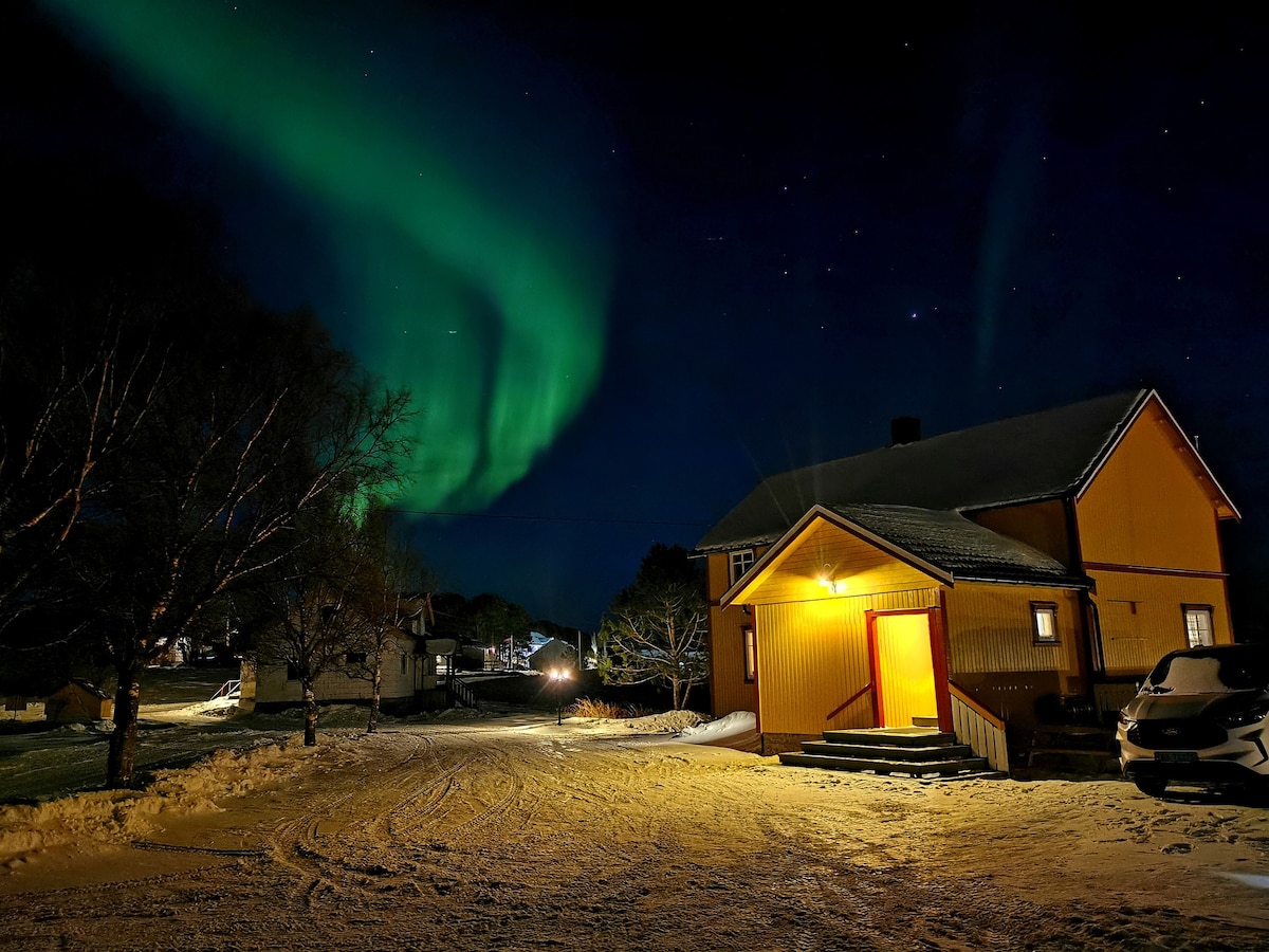 Hazır yataklara gelin. Büyük teraslı, barbekülü ve güzel manzaralı 96 m2 büyük ev. 2 yatak odası. Harika güneş koşulları. Süt üretimi ile çalışan çiftlikte yer alıyor. Kapının hemen dışında özel park yeri. Tekerlekli sandalye rampası, hepsi tek katta. Terastan hem kuzey ışıklarını, hem geyikleri hem de geyikleri görme fırsatları. Çocuk dostu. Ormana, yürüyüş fırsatlarına ve kayak parkurlarına anında yakın. Yakınlarda somon balıkçılığı ve küçük av avı. Özel şarjlı teleferik getirilebilir. Ücret tüketime göre ödenir.