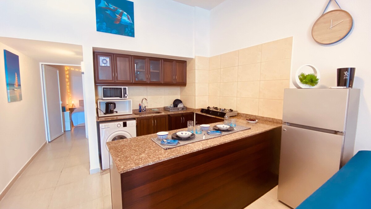 Sahibi Yuliya tarafından özenle tasarlanmış bu dairede huzuru ve konforu yaşayın. Mekân, küçük mutfak ve çamaşır makinesi ile tüm ihtiyaçlarınızı karşılayacak şekilde tamamen mobilyalıdır ve donatılmıştır. Netflix aboneliği ile birlikte yüksek hızlı internetin keyfini çıkarın. İki yeni klima yıl boyunca rahat bir iklim sağlar. Plaj arabayla sadece 2 -6 dakika uzaklıktadır ve yolun karşısında hızlı teslimat hizmetleri sunan büyük bir süpermarket bulunmaktadır.
