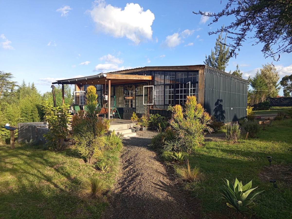 Naivasha'daki Mt.Longonot Yanardağı'nın eteklerinde yer alan çok benzersiz ve ‘İlginç’, modern (Çevre Dostu) bir çalı evi. Ev Mabati'de (metal kaplama) kaplıdır ve Kenya'da türünün tek örneği bir tasarımdır. Ev, gündüzleri güneş enerjisiyle ısıtılan ve geceleri odun ateşi ile ısıtılabilen küçük bir dalma havuzuna sahiptir. Rahatlamak için bir partnerle romantik bir hafta sonu veya tek başınıza sessiz bir hafta sonu arıyorsanız burası tam size göre! Ev tamamen "şebeke dışı" ve ☀️